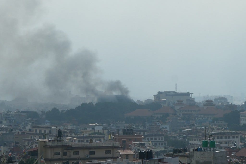 Smoke coursing up over Kathmandu following the protests. (Photo by a friend, used with permission, who asked for their name not to be released).